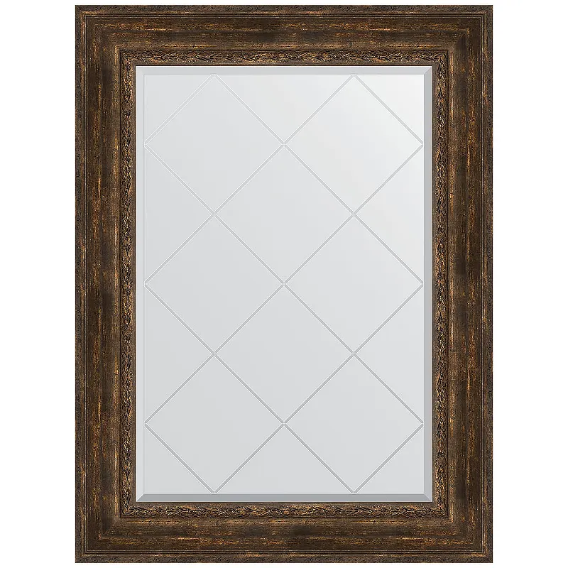 Зеркало Evoform Exclusive-G 110х82 BY 4215 с гравировкой в багетной раме - Состаренное дерево с орнаментом 120 мм