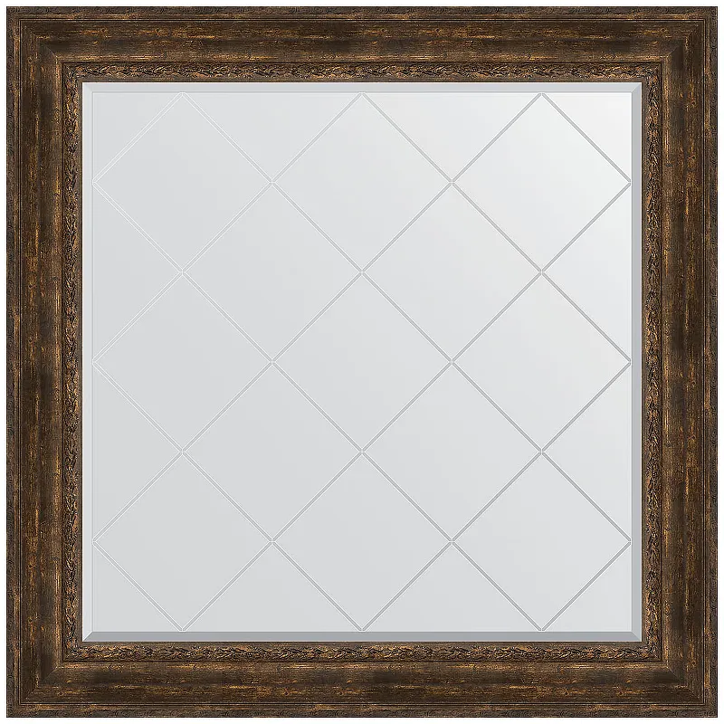 Зеркало Evoform Exclusive-G 112х112 BY 4473 с гравировкой в багетной раме - Состаренное дерево с орнаментом 120 мм