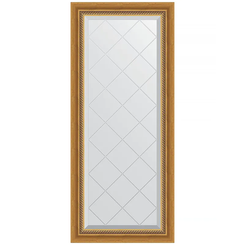 Зеркало Evoform Exclusive-G 123х53 BY 4045 с гравировкой в багетной раме - Состаренное золото с плетением 70 мм