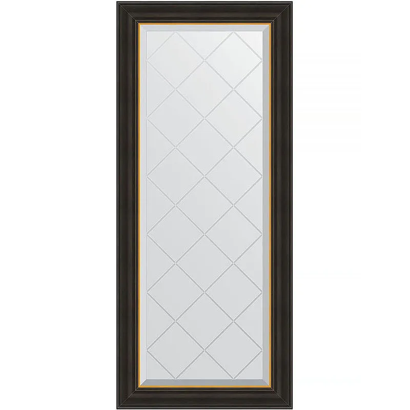 Зеркало Evoform Exclusive-G 124х54 BY 4530 с гравировкой в багетной раме - Черное дерево с золотом 71 мм