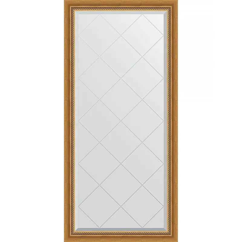 Зеркало Evoform Exclusive-G 135х73 BY 4260 с гравировкой в багетной раме - Состаренное золото с плетением 70 мм