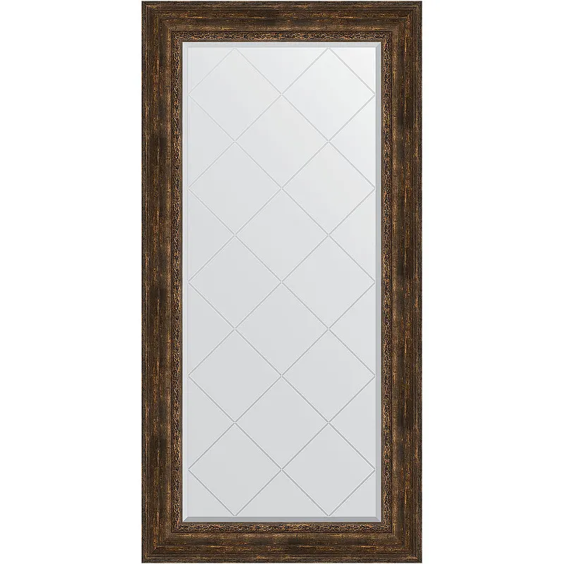 Зеркало Evoform Exclusive-G 164х82 BY 4301 с гравировкой в багетной раме - Состаренное дерево с орнаментом 120 мм