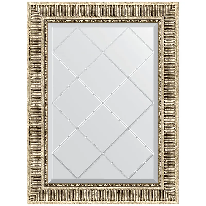 - Зеркало с багетом и гравировкой: Элегантная багетная рама "Серебряный акведук" с гравировкой придаёт зеркалу изысканный вид.