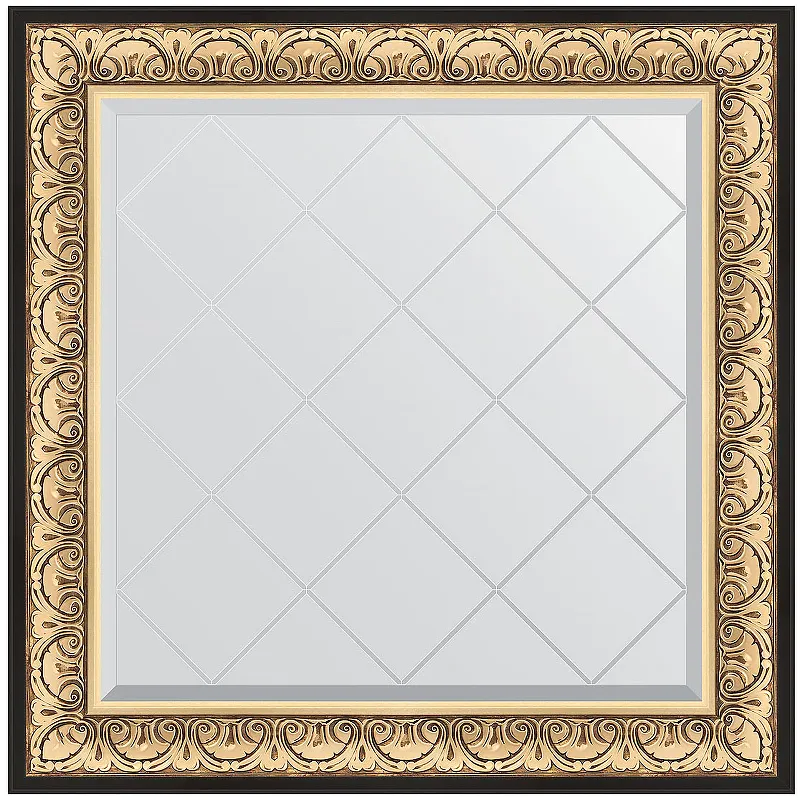 Зеркало Evoform Exclusive-G 90х90 BY 4337 с гравировкой в багетной раме - Барокко золото 106 мм