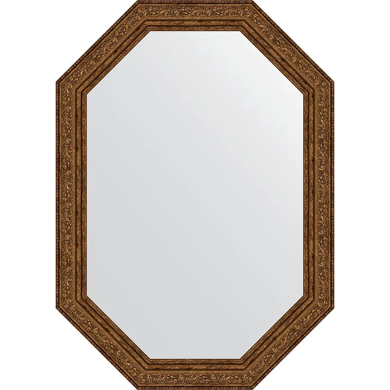 Зеркало Evoform Octagon 50x70 BY 7029 в багетной раме Виньетка состаренная бронза 56 мм со шлифованной кромкой - изготавливается из высококачественного полотна AGC Mirox MNGE (New Generation). Экологически чистое зеркальное полотно нового поколения. Можно использовать в помещениях с повышенной влажностью.Характеристики: Цвет рамы: виньетка состаренная бронза. Материал: стекло, полиуретан. Форма: восьмиугольник. Размеры (ШхВхГ): 500х700х29 мм. Ширина рамы: 56 мм. Толщина полотна: 4 мм. Обработка кромки стекла: шлифованная. Ориентация: вертикальная, горизонтальная. Монтаж: подвесной. Комплект поставки: Зеркало. Крепления. Инструкция.
