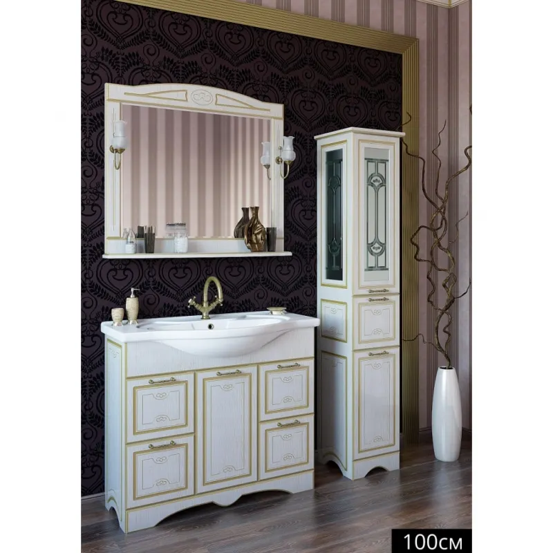 - Материал устойчив к влаге: Изготовлено из МДФ с патинированным покрытием, идеально подходит для ванной комнаты.