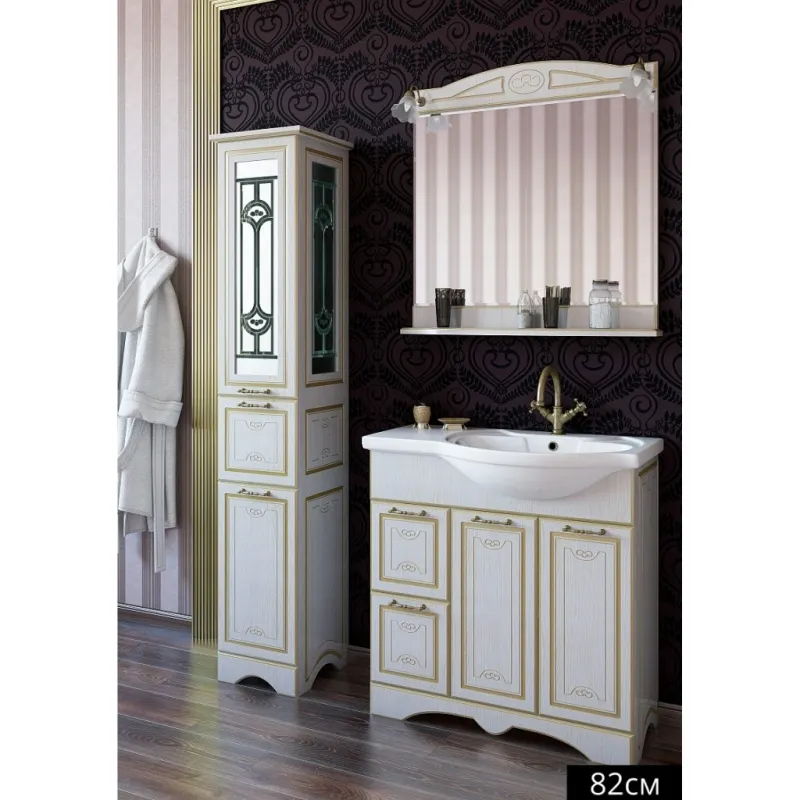 - Эстетичное оформление: Белое патина золото отлично сочетается с любой цветовой гаммой ванной комнаты.
