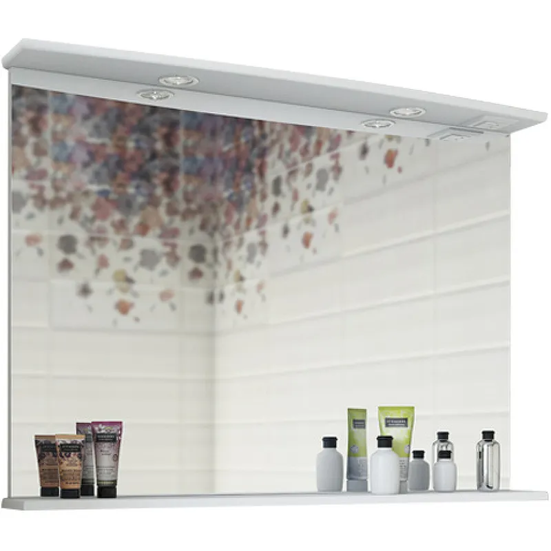 Зеркало Sanflor Софи 105 С0002225 с подсветкой.Характеристики: Цвет: белый матовый. Материал корпуса: влагостойкая ЛДСП. Покрытие корпуса: ламинат (матовое). Форма: прямоугольная. С розеткой. Система хранения: открытая полка. Размеры (ШхВхГ): 1004х720х150 мм. В комплекте поставки: Зеркало. Крепления.