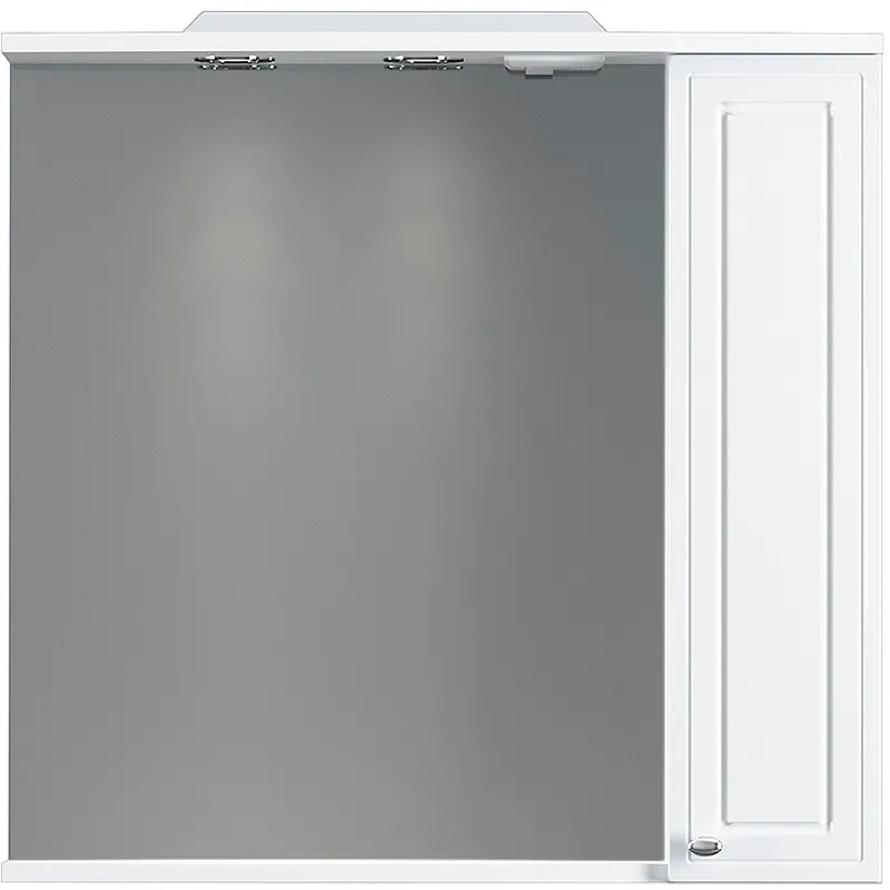 Зеркало со шкафом Damixa RedBlu Palace One 75 M41MPR0751WG - модный современный дизайн в стиле минимализм.Уникальная технология покраски с использованием экологически чистых итальянских красок - высокий глянец, яркий и насыщенный белый цвет, не подверженный воздействию влаги и ультрафиолета. Цвет: белый. Две стеклянные полки и распашная дверца. Тип лампы: светодиодная LED 5W/12V. Материал: ЛДСП, МДФ, зеркало. Габариты (ШхДхВ): 75 х 19 х 75 см. Цвет фурнитуры: хром. В комплекте поставки: Зеркало со шкафом.