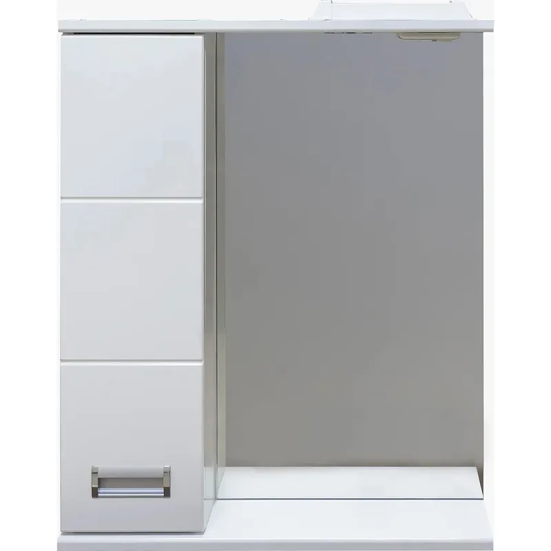 Зеркало со шкафом DIWO Дмитров 60 L СО-Дм04060-011Л с подсветкой.Характеристики: Цвет: белый. Материал корпуса: ДСП. Материал фасада: МДФ. Поверхность корпуса: матовая. Поверхность фасада: глянцевая. Габариты (ШхВхГ): 60x73,6x14 см. Система хранения: 1 распашная дверца, открытая полка снизу. Петли с системой плавного закрывания. Монтаж: подвесной. Ориентация шкафа: левая. Фурнитура цвет: хром. Механический выключатель, розетка. Светодиодная лампа: 3,2 Вт. В комплекте поставки: Комплект доводчиков. Инструкция.