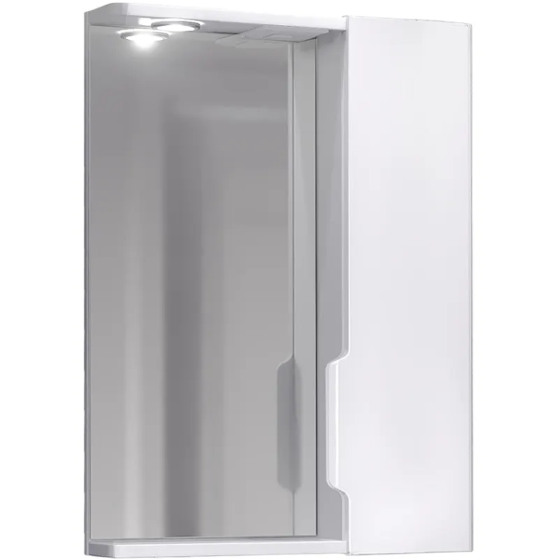 Зеркало со шкафом Jorno Moduo Slim 50 Mod.03.50/W с подсветкой - компактный шкафчик станет отличным функциональным решением для любой ванной комнаты. Прекрасно дополнит интерьер и подарит комфорт и уют. Внутри шкафчика 2 полочки. Встроенные в карниз светильники, розетка и выключатель.Характеристики: Ориентация: правая. Материал фасада - МДФ, зеркальное полотно, материал корпуса – ДСП с классом эмиссии E1. Мебель покрыта премиальной пленкой (Южная Корея). Петли с доводчиками для плавного бесшумного закрывания дверцы. Мощность подсветки - 10 Вт Фурнитура - хром матовый. Габариты (ШхВхГ) - 49,8х70х15 см. В комплекте поставки: зеркало.