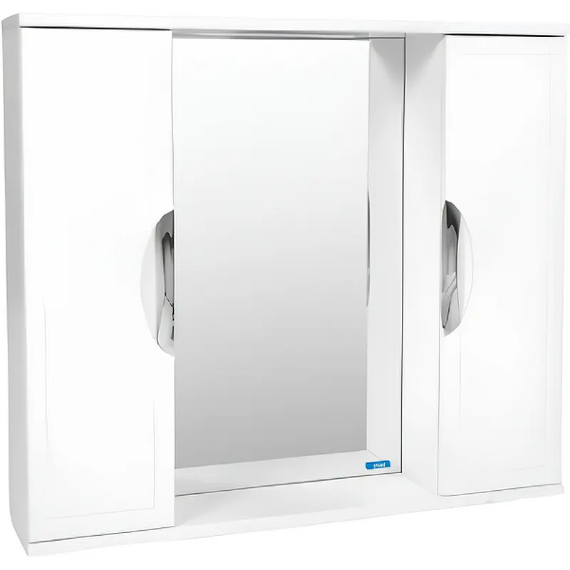 Зеркало со шкафом VIANT Лима 80 VLIM80-ZSH.Характеристики: Цвет корпуса: белый. Материал корпуса: ЛДСП Lamarty. Материал фасада: МДФ, зеркальное полотно. Покрытие корпуса: ламинация. Покрытие фасада: пленка ПВХ. Габариты (ШхВхГ): 800х700х160 мм. Цвет фурнитуры: хром. Система хранения: две распашные дверцы, полки внутри шкафа из стекла, открытая полка снизу. Оснащение: петли с доводчиком Boyard. Монтаж: подвесной (на эксцентриках). В комплекте поставки: Зеркало со шкафом.