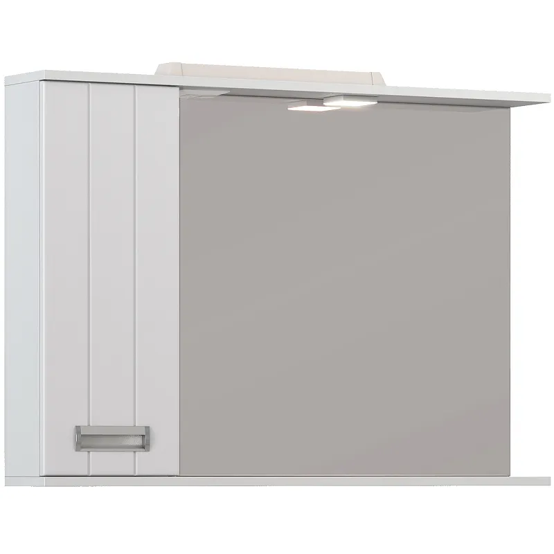 Зеркало со шкафом Vigo Diana 100 L z.DIA.100.L.El с подсветкой.Характеристики: Цвет: белый. Материал корпуса: ЛДСП. Покрытие корпуса: пленка. Поверхность корпуса: матовая. Материал фасада: ЛМДФ. Покрытие фасада: пленка, зеркальное полотно. Поверхность фасада: глянцевая. Мощность лампы: 3,5 W. Габариты (ШхВхГ): 100,1х70х15,5 см. Монтаж: подвесной. Ориентация дверок: левая. Система хранения: 1 распашная дверца, 2 полки ЛДСП. Петли с механизмом плавного закрывания. Ручка хромированная. Оснащение: встроенный светодиодный светильник, включатель и розетка. В комплекте поставки: Зеркало со шкафом.
