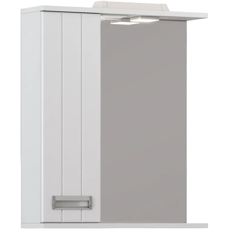 Зеркало со шкафом Vigo Diana 60 L z.DIA.60.L.El с подсветкой.Характеристики: Цвет: белый. Материал корпуса: влагостойкий ЛДСП. Материал фасада: ЛМДФ, зеркальное полотно. Покрытие корпуса: ламинат глянцевый. Покрытие фасада: пленка глянцевая ПВХ. Вертикальная фрезеровка на фасаде. Размеры (ШхВхГ): 600х700х156 мм. Цвет ручки: хром. Ориентация: левосторонняя. Система хранения: распашная дверца с механизмом плавного закрывания, 2 полки внутри шкафа из ЛДСП, открытая полка снизу. Оснащение: светодиодный светильник, клавишный выключатель, розетка. Монтаж: подвесной. В комплекте поставки: Зеркало со шкафом.