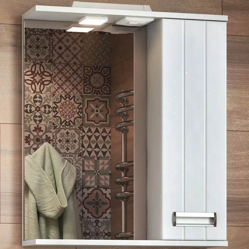 Зеркало со шкафом Vigo Diana 60 R z.DIA.60.R.El с подсветкой.Зеркало со шкафом служит функциональной зоной хранения. Позволит держать все необходимые косметические средства в идеальном порядке. Идеально подходит для интерьера в современном стиле. Технические характеристики: Габариты: 60 x 15 x 70 см, форма: прямоугольная, материал: ЛДСП, зеркало, система хранения: 1 дверца, 2 полки ЛДСП, петли с механизмом плавного закрывания, монтаж: подвесной.Мебель не боится влажности и устойчива к бытовой химии. Практична и проста в уходе.