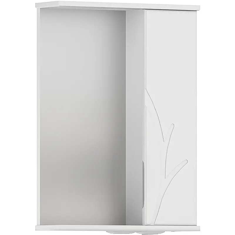 Зеркало со шкафом Volna Adel 50 R zsADEL50.R-01 с подсветкой.Характеристики: Цвет: белый. Материал фасада: МДФ, зеркальное полотно. Материал корпуса: ЛДСП. Покрытие фасада: пленка глянцевая ПВХ. Покрытие корпуса: ламинат матовый. Размер (ШхВхГ): 500х700х146 мм. Декоративная фрезеровка на фасаде. Интегрированная ручка. Встроенная светодиодная подсветка. Тип выключателя: электровыключатель. Мощность лампы: 6000 W. Ориентация: шкафчик справа. Оснащения: механизм доводчика. Система хранения: распашная дверца, полки внутри шкафа, открытая полка снизу. Монтаж: подвесной. В комплекте поставки: Зеркало со шкафом. Стеклянные полки - 2 шт. Подсветка. Выключатель. Электрическая розетка.