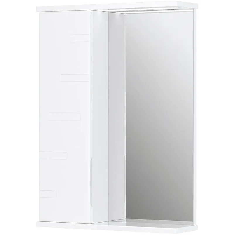 Зеркало со шкафом Volna Joli 50 L zsJOLI50.L-01 с подсветкой.Характеристики: Цвет: белый. Материал фасада: МДФ, зеркальное полотно. Материал корпуса: ЛДСП. Покрытие фасада: пленка глянцевая ПВХ. Покрытие корпуса: ламинат матовый. Размер (ШхВхГ): 500х700х146 мм. Декоративна фрезеровка на фасаде. Интегрированная ручка. Встроенная светодиодная подсветка. Тип выключателя: электровыключатель. Мощность лампы: 6000 W. Ориентация: шкафчик слева. Оснащения: механизм доводчика. Система хранения: распашная дверца, полки внутри шкафа, открытая полка снизу. Монтаж: подвесной. В комплекте поставки: Зеркало со шкафом. Стеклянные полки - 2 шт. Подсветка. Выключатель. Электрическая розетка.