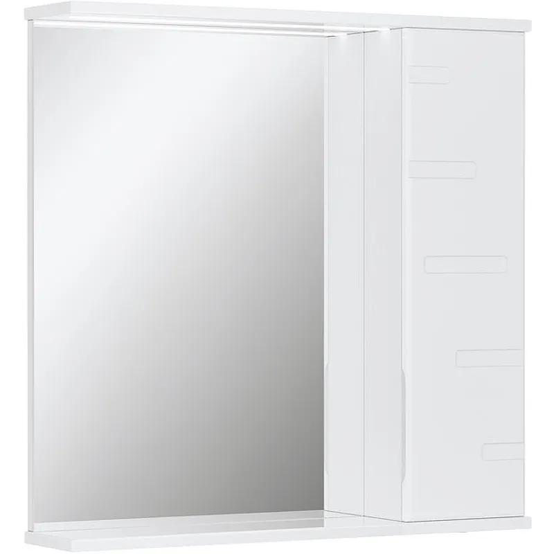 Зеркало со шкафом Volna Joli 70 R zsJOLI70.R-01 с подсветкой.Характеристики: Цвет: белый. Материал фасада: МДФ, зеркальное полотно. Материал корпуса: ЛДСП. Покрытие фасада: пленка глянцевая ПВХ. Покрытие корпуса: ламинат матовый. Размер (ШхВхГ): 700х700х146 мм. Декоративна фрезеровка на фасаде. Интегрированная ручка. Встроенная светодиодная подсветка. Тип выключателя: электровыключатель. Мощность лампы: 6000 W. Ориентация: шкафчик справа. Оснащения: механизм доводчика. Система хранения: распашная дверца, полки внутри шкафа, открытая полка снизу. Монтаж: подвесной. В комплекте поставки: Зеркало со шкафом. Стеклянные полки - 2 шт. Подсветка. Выключатель. Электрическая розетка.