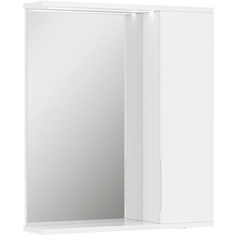 Зеркало со шкафом Volna Lake 60 R zsLAKE60.R-01 с подсветкой.Характеристики: Цвет: белый. Материал фасада: МДФ, зеркальное полотно. Материал корпуса: ЛДСП. Покрытие фасада: пленка глянцевая ПВХ. Покрытие корпуса: ламинат матовый. Размер (ШхВхГ): 600х700х146 мм. Интегрированная ручка. Встроенная светодиодная подсветка. Тип выключателя: электровыключатель. Мощность лампы: 6000 W. Ориентация: шкафчик справа. Оснащения: механизм доводчика. Система хранения: распашная дверца, полки внутри шкафа, открытая полка снизу. Монтаж: подвесной. В комплекте поставки: Зеркало со шкафом. Стеклянные полки - 2 шт. Подсветка. Выключатель. Электрическая розетка.